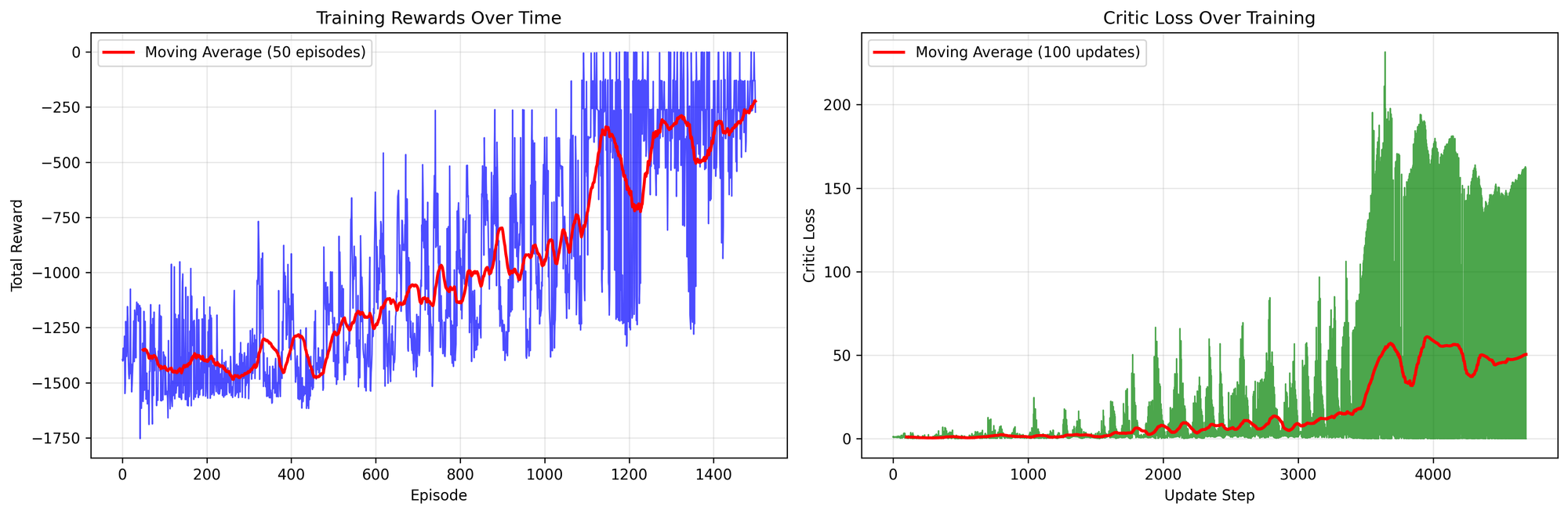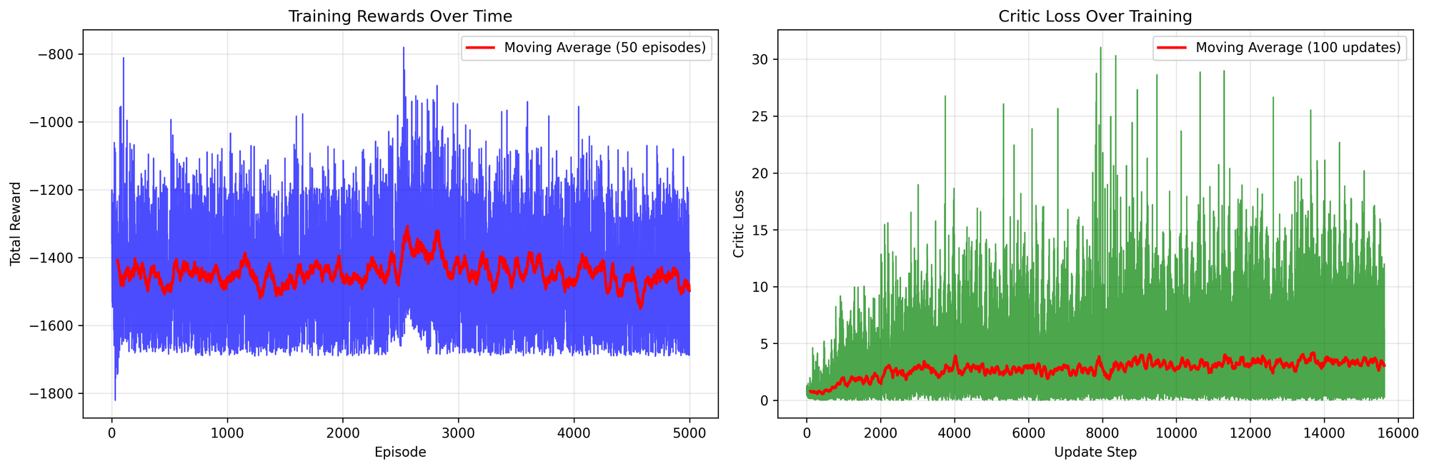 return episode_rewards, critic_losses, actor_lossesActor Critic - CSY
