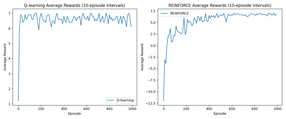 Value-Based(Q-Learning) and Policy-Based (REINFORCE) learned policies - CSY